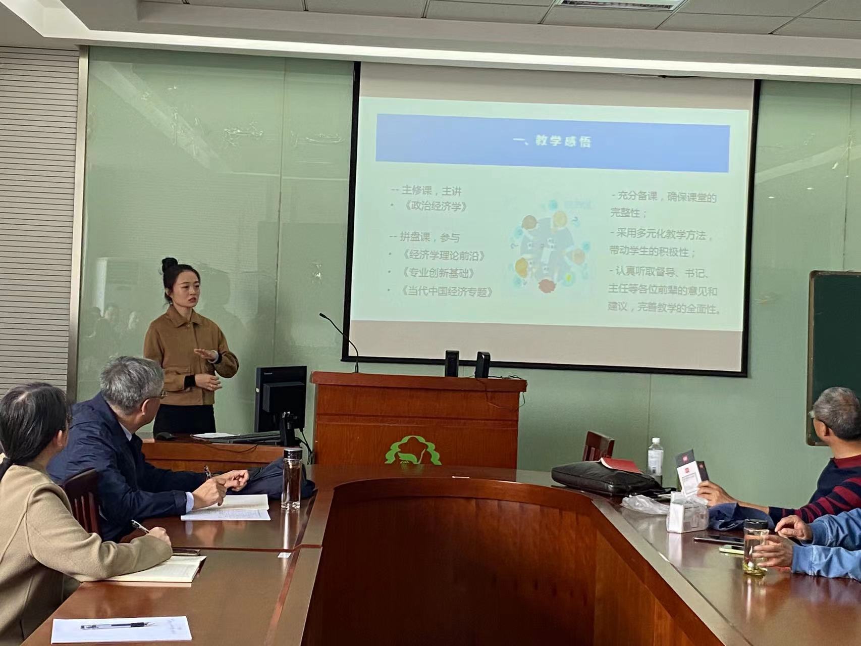 近两年进入经济学(智慧管理)系的12位青年教师进行了汇报,交流教学科研尤其是教学方面的心得体会和困惑。蒋建刚老师对青年教师的汇报做了精彩的点评,讲解了青年教师应如何提高教学水平、如何进行毕业论文指导,最后对新进教师们在教学方面的疑惑做了详尽的解答。
