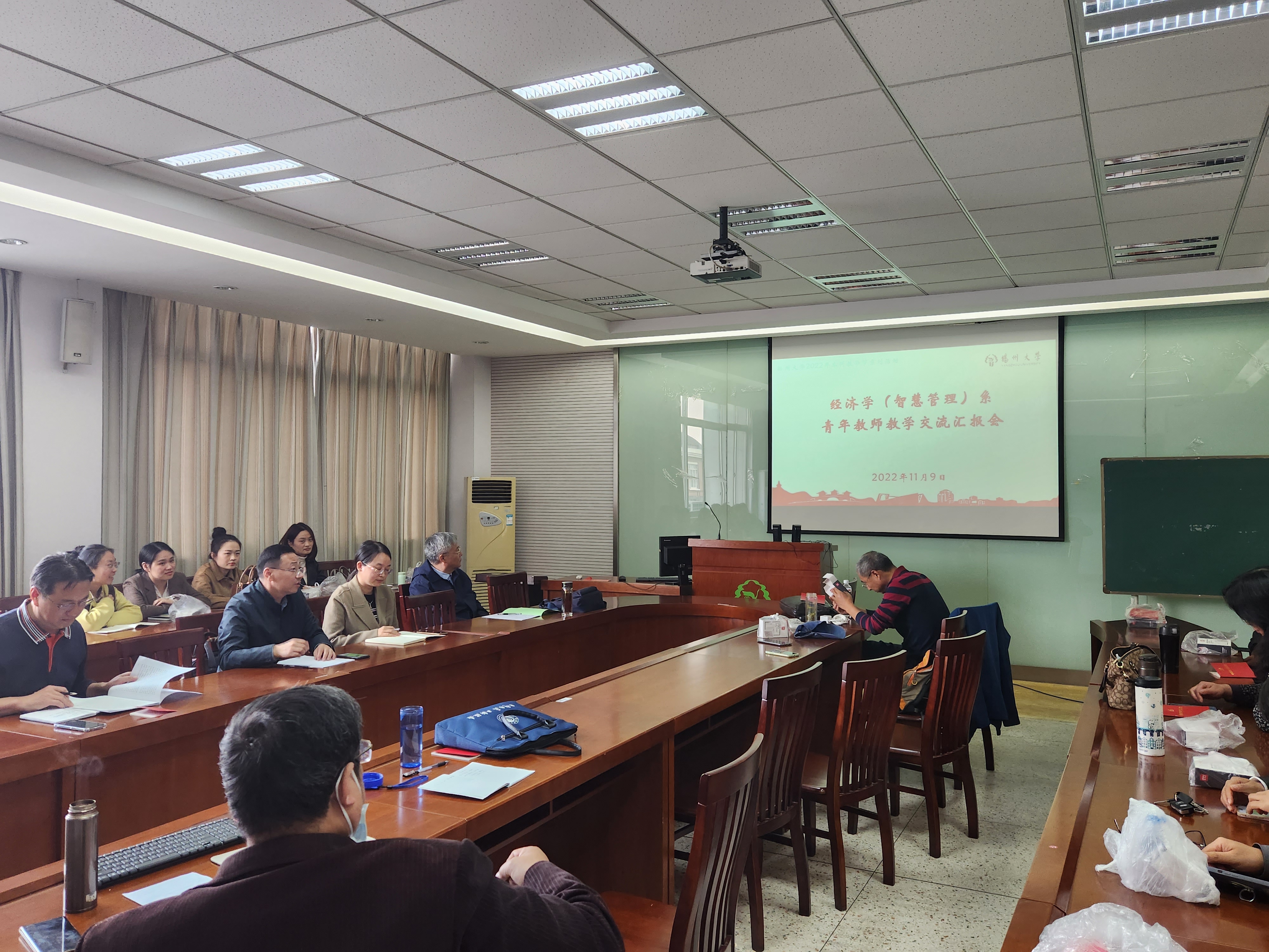 作为扬州大学2022年本科教学节系列活动,商学院经济学(智慧管理)系于11月9日下午在扬子津西校区MPA中心514室开展“经济学(智慧管理)系青年教师教学交流汇报会”为主题的教学沙龙活动。学院徐静副院长、校督导蒋建刚老师出席会议。