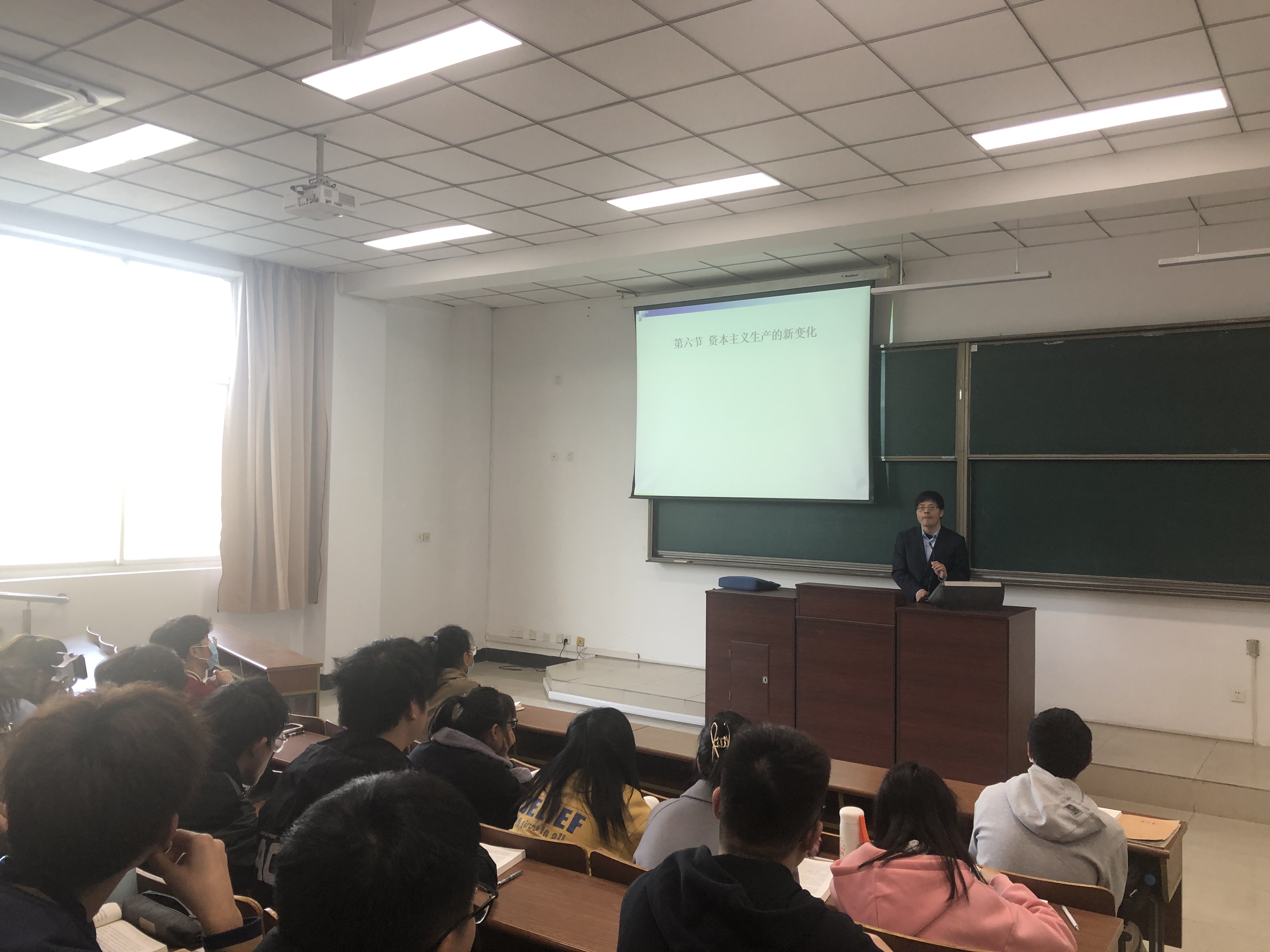 2022年11月15日下午,商学院开展了教授观摩课活动。朱高林教授给商学院经济2201和经济2202班学生讲授了《政治经济学》课程中“资本主义生产的新变化”一节内容。
