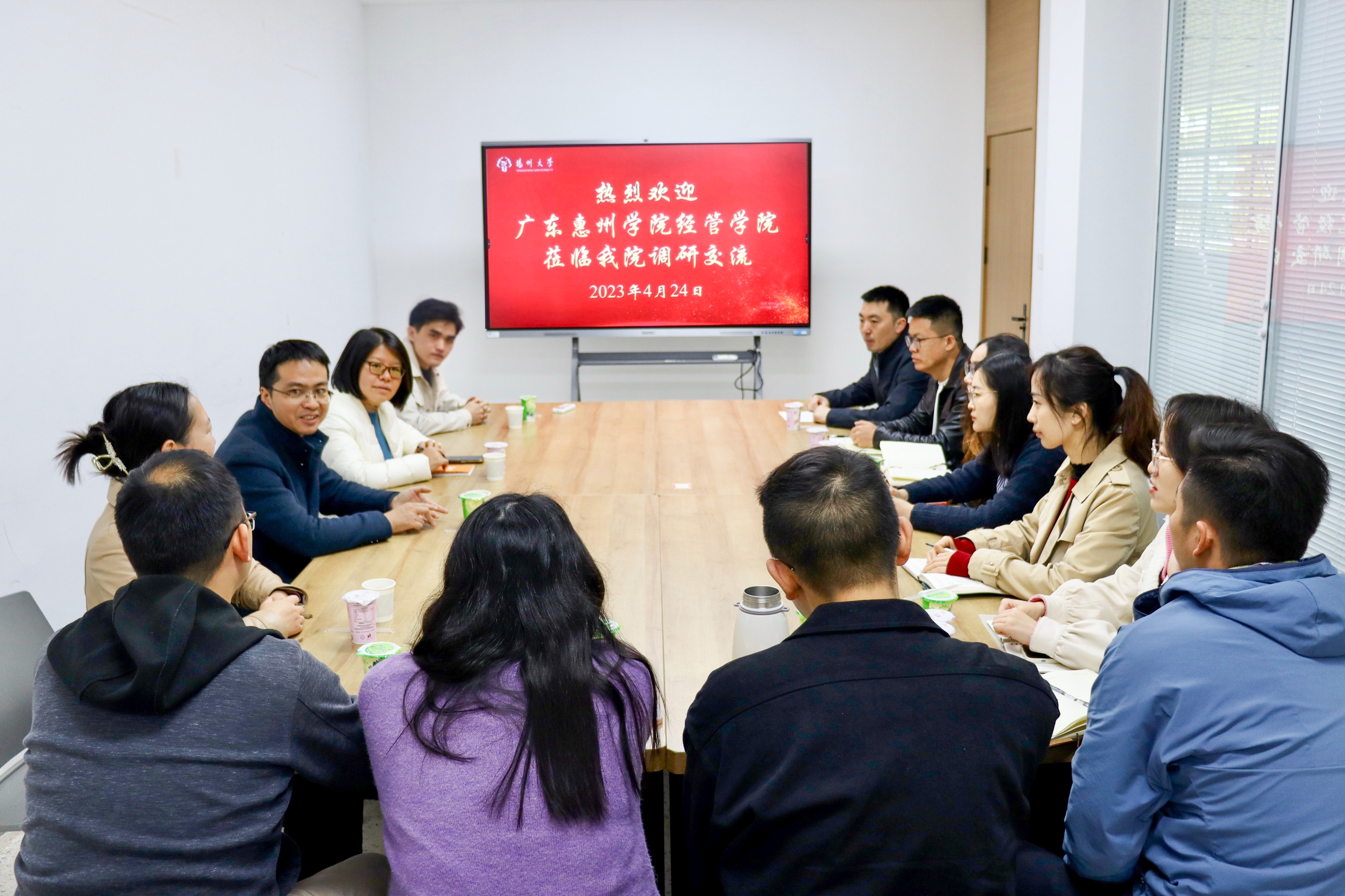 4月24日上午,广东惠州学院经管学院党总支副书记祝琳带领学工团队一行来我院调研交流。商学院党委副书记姚丰华及学院全体辅导员一同与来访同仁开展座谈交流。