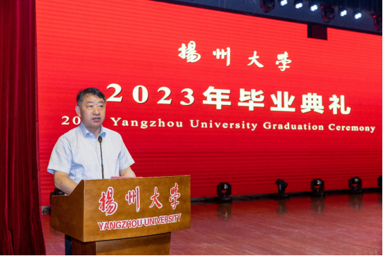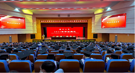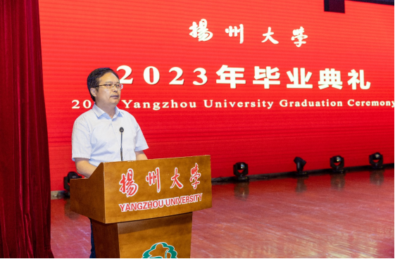 2023年6月24日上午,扬州大学商学院专业学位研究生毕业典礼暨学位授予仪式在扬子津校区文体馆三楼报告厅隆重举行。出席典礼的领导有校学科办主任戴玉琴教授,商学院全体院领导,学位中心、MPA、MBA、MPAcc、MA教育中心负责人,导师代表,各专业学位全体毕业生,以及部分学员亲友,大家共同见证了这一庄重、收获的时刻。