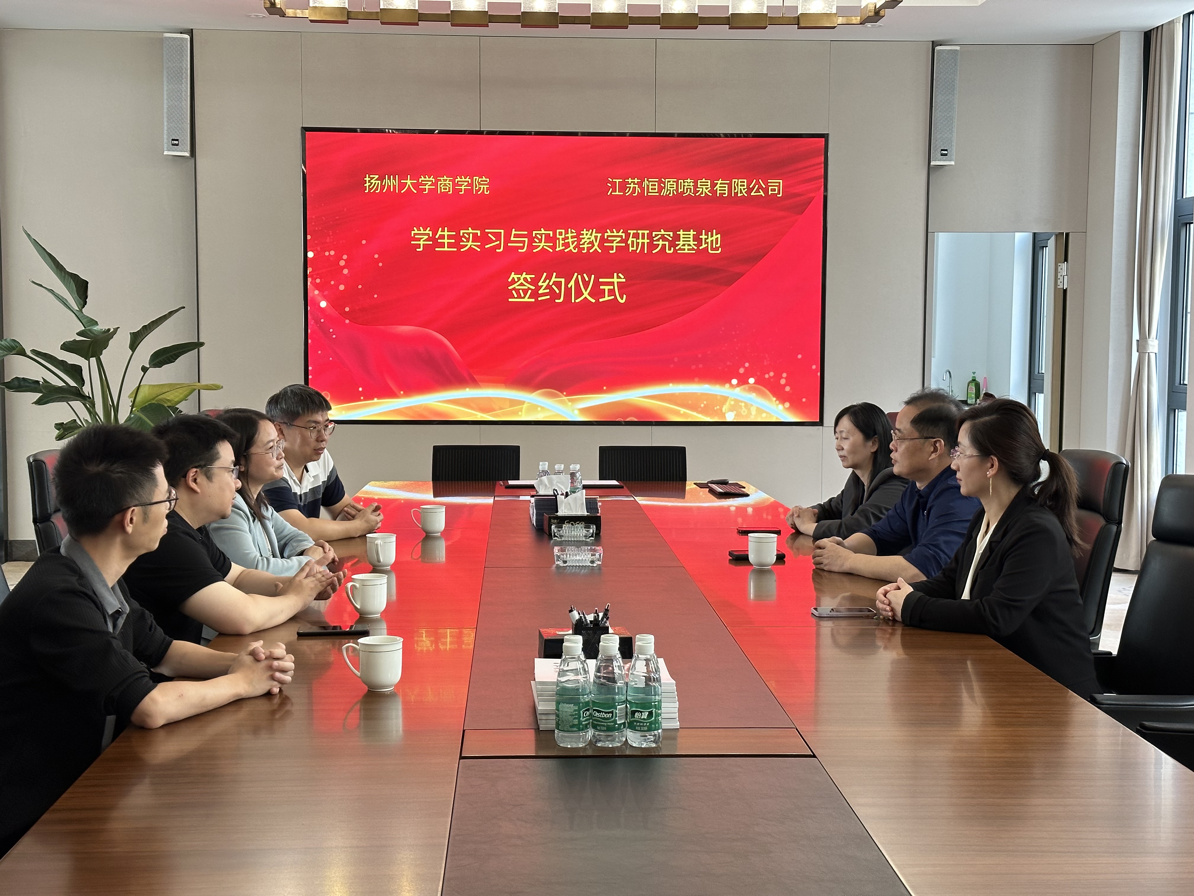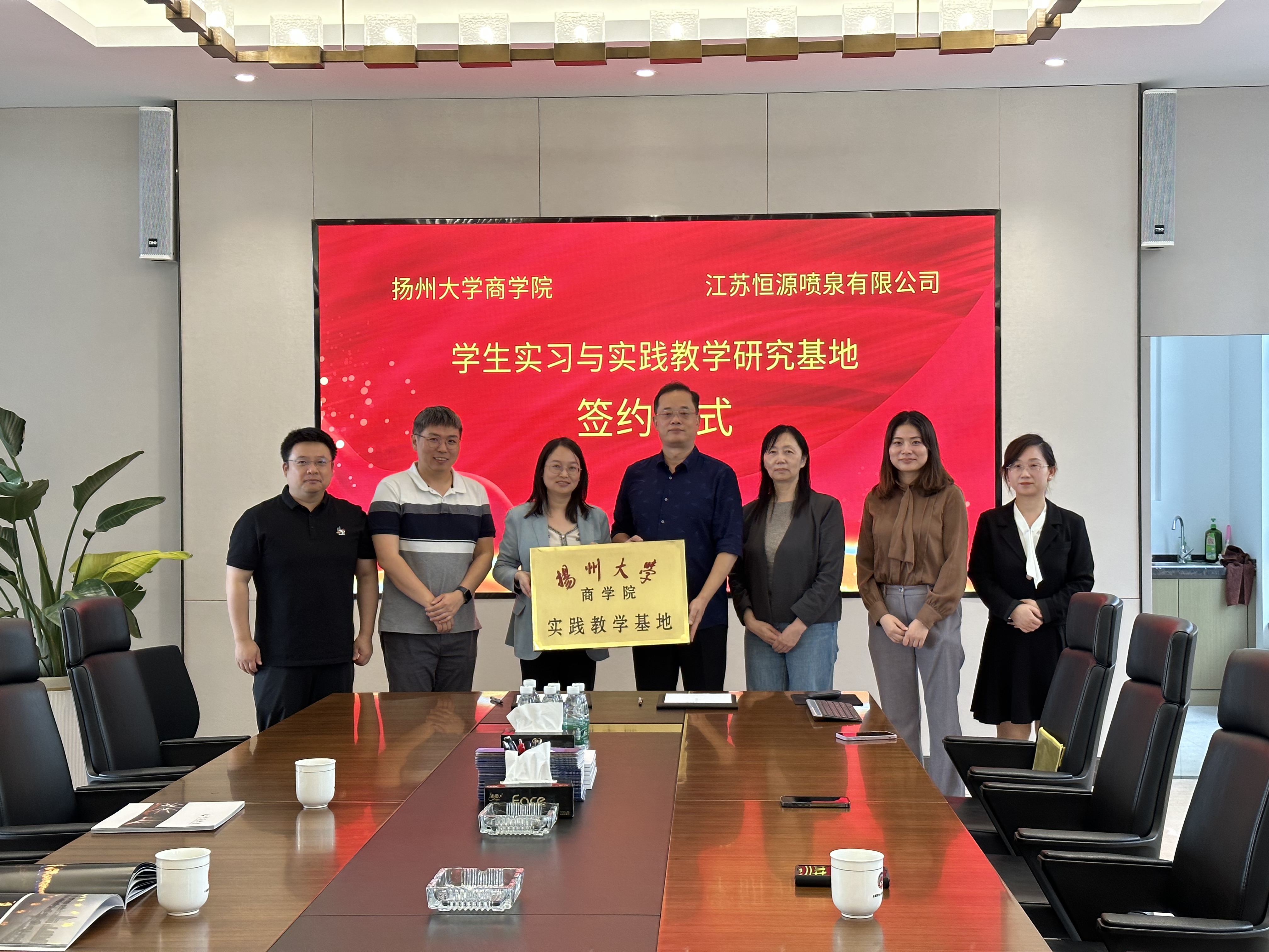 2023年10月14日,扬州大学商学院与江苏恒源喷泉有限公司达成深度合作协议,并在江苏恒源喷泉有限公司举行了“扬州大学商学院学生实习与实践教学研究基地”揭牌仪式。双方将共同致力于工商管理和市场营销实习实践教学,进一步推动人才培养和社会实践的深度融合。
