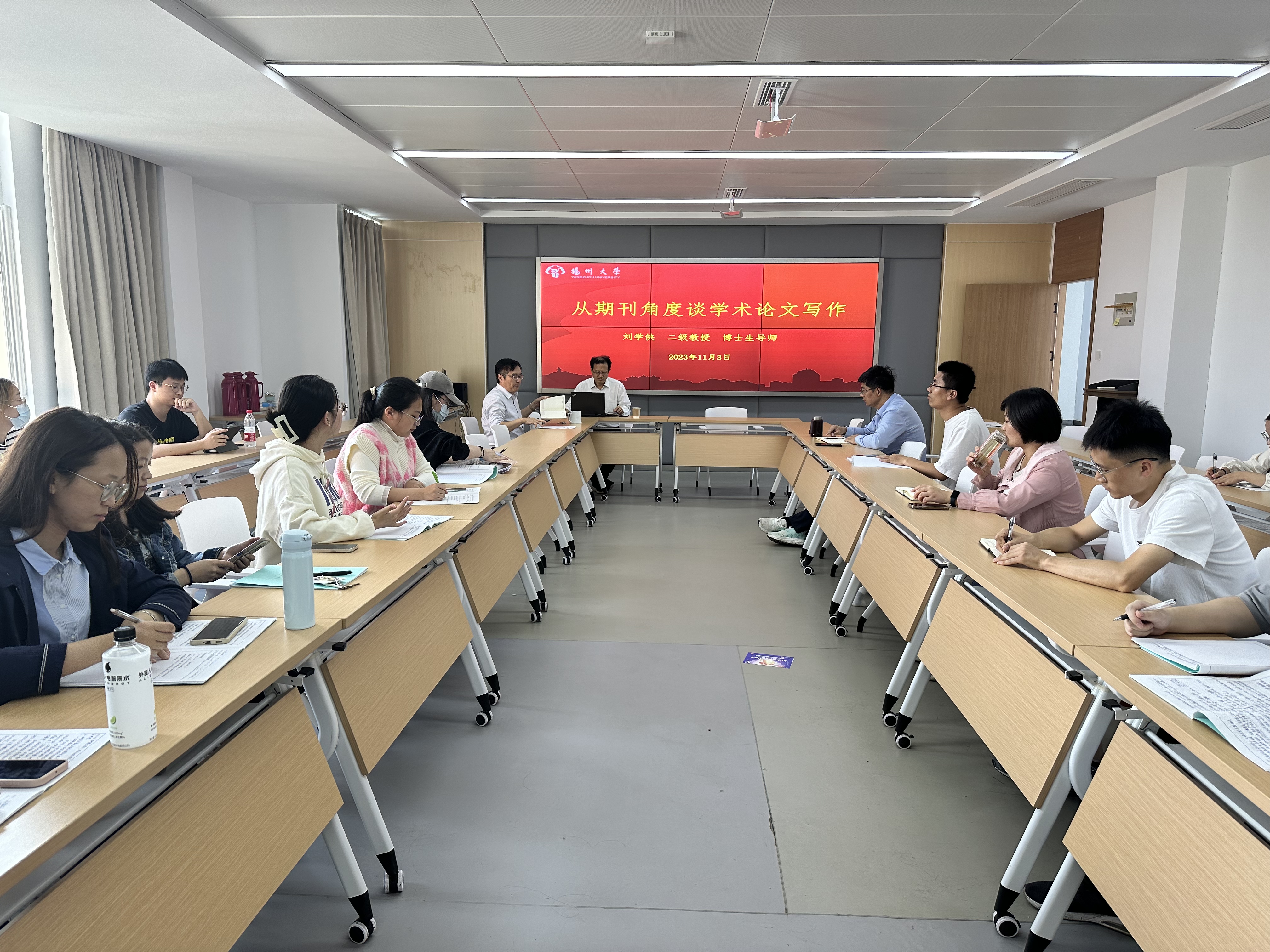 2023年11月1日,应扬州大学商学院邀请,中央党校(国家行政学院)二级教授,博士生导师,《行政管理改革》副主编刘学侠莅临我院作了题为“从期刊角度谈学术论文规范”的学术报告。扬州大学商学院院长李志斌教授主持报告会,商学院公共管理系等相关专业教师和研究生共计50余人参加了本次报告会。