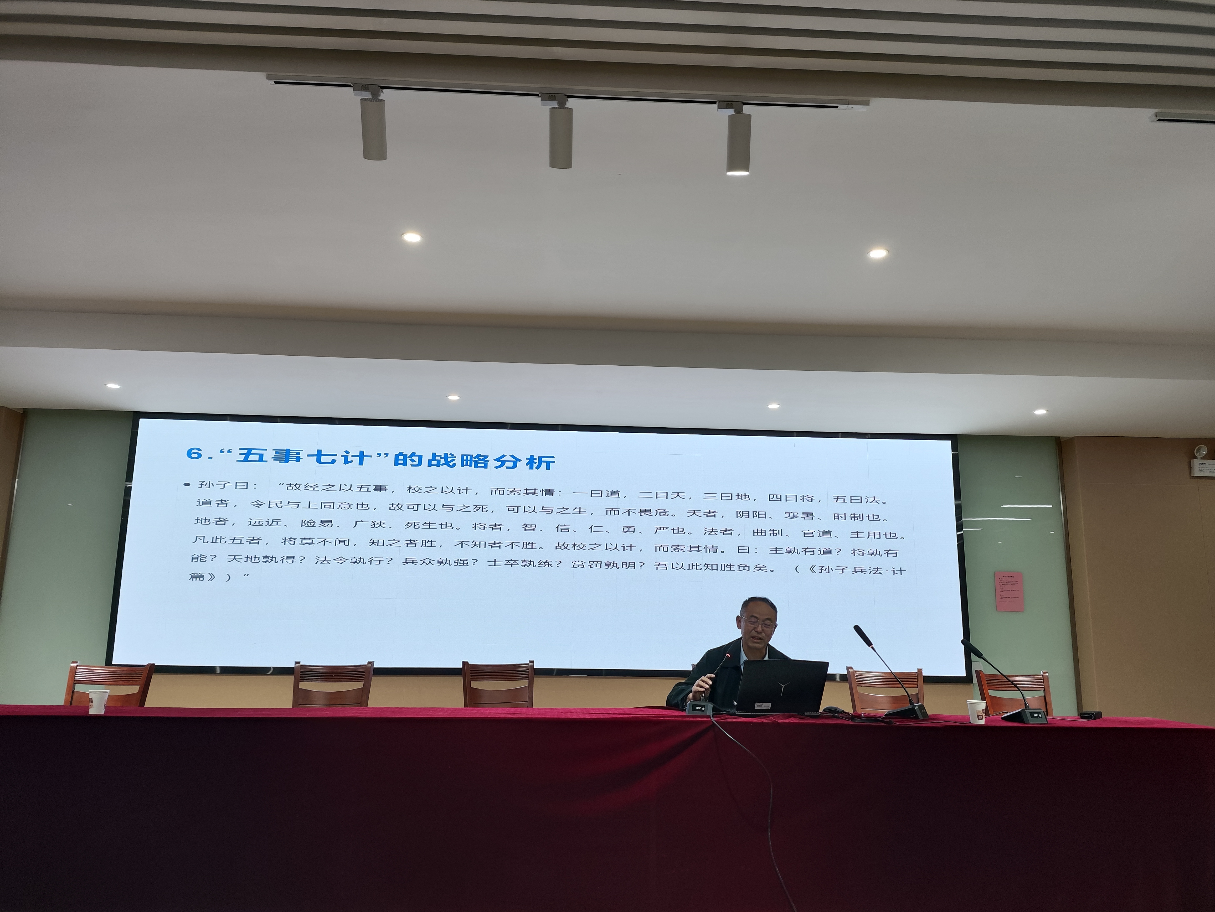 11月22日下午,工商管理系举办了扬州大学2023年本科教学节活动之教授讲座活动。主讲人为吕力教授,他是中国管理现代化研究会管理思想与商业伦理专委会副主任、中国企业管理研究会中国式管理专委会副主任、中国管理50人成员,中国管理模式国际论坛轮值主席(2023年)。讲座主题是“兵家智慧与企业战略”。吕力教授从《孙子兵法》中“五事七计”讲起,解读“主孰有道?将孰有能?天地孰得?法令孰行?兵众孰强?士卒孰练?赏罚孰明?”等各要点在企业战略管理中的运用,生动诠释了各种追求不战而胜的策略与战术,让全体师生体会到中国传统文化的博大精深,深刻感悟到“不战而屈人之兵”是人类战略思想和理论的最高境界。这是一场中国哲学思想和传统文化的思想盛宴,进一步增强了全体师生的民族自信和文化自信。全院共70余人参加了讲座活动。