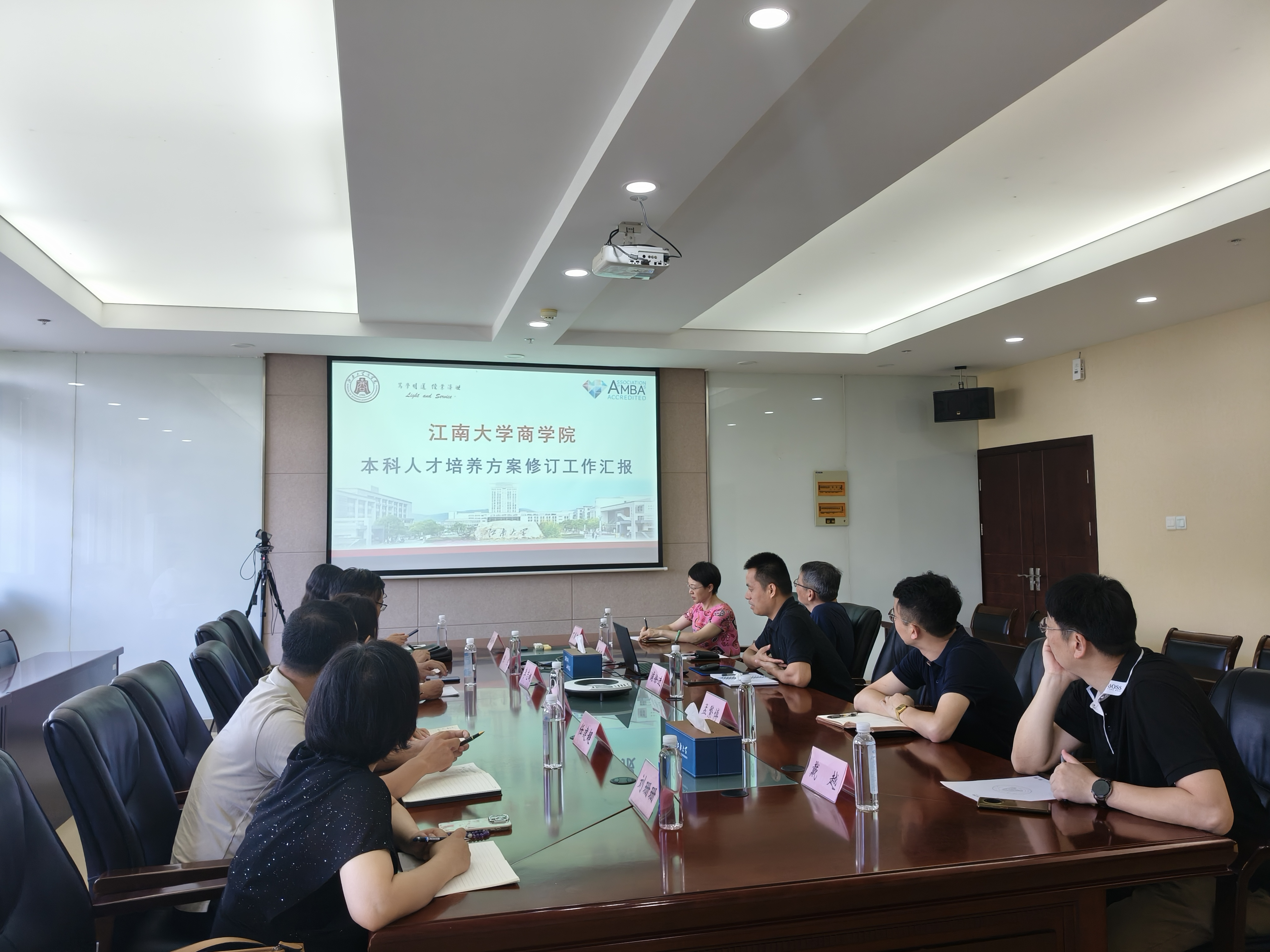 在江南大学,调研团队受到了院长浦徐进教授、管理学院工程系主任曹文彬教授、国际贸易系主任戴越教授、分管国际交流的院助孟繁博老师以及教务办主任丁善耘等领导的热情接待。浦徐进院长详细介绍了江南大学商学院的基本情况,并着重分享了学院在本科培养方案修订方面的整体思路、创新举措、重点突破及阶段性成果。随后,双方围绕2025版人才培养方案的制定与修订,从课程体系优化、数智化能力培养、实践教学强化、创新创业能力培养等多个维度展开了深入而细致的交流讨论。