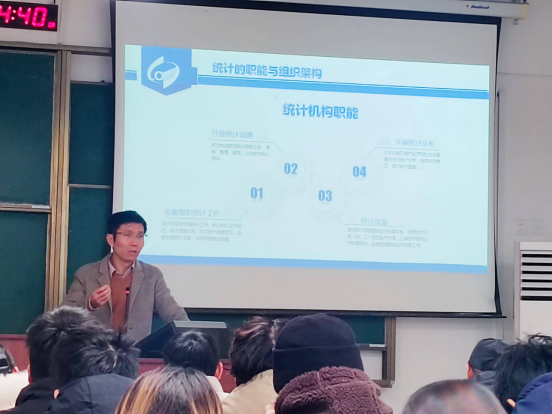 丁处长首先从统计的功能、统计内容、统计方法以及数据采集手段的不断创新等方面,对农村统计调查进行了全面介绍。他强调了统计在农业生产中的重要性,并分享了近年来在统计方法上的创新实践。在种植业统计与畜牧业统计部分,结合全国、江苏省以及扬州市的生产实践情况,详细说明了相关统计信息,并通过图表形式直观展示了数据。畜牧业统计部分同样结合了实际生产数据,为师生们提供了丰富的第一手资料。