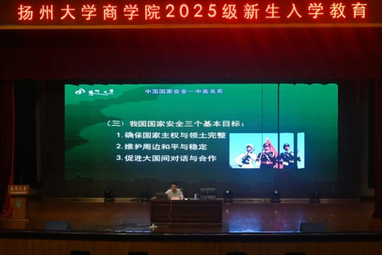 为进一步帮助新生增强国家安全意识,以未来商业领军人才的视角审视世界格局、思考时代责任,9月12日晚,商学院于文体馆三楼报告厅开展了“国家安全”主题新生入学教育活动。本次活动由马荣幸老师主讲,商学院党委副书记姚丰华主持,2025级全体新生参与,为新生呈现了一场有关国际形势、国家安全与青年责任的思想盛宴。