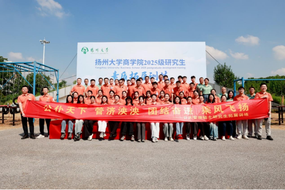 为全面提升我院非全日制研究生的团队凝聚力与合作精神,营造积极向上、协同共进的校园文化氛围,2025年9月21日,扬州大学商学院组织2025级 MPA、MBA及农村发展专业215位非全日制专业学位研究生新生,赴扬州市体育拓展训练中心开展为期一天的户外素质拓展训练。