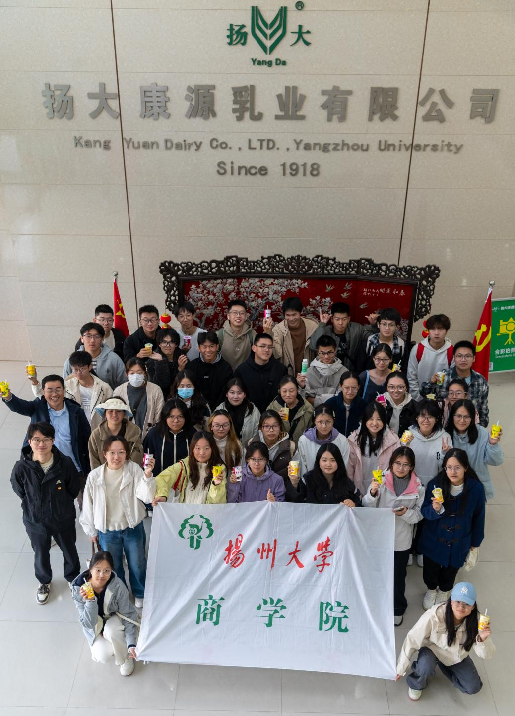 离开贵人果园后,师生们乘车前往康源乳业有限公司,探访这座现代化的乳制品加工“王国”。在公司负责人的引领下,师生们透过参观走廊的玻璃幕墙,如同置身于一场乳制品生产的视觉盛宴中,亲眼目睹了从生奶收奶、产品配料、杀菌发酵、质量检测、无菌灌装到成品包装的标准化生产线。同时,师生们还详细了解了康源乳业丰富的产品种类、悠久的发展历程以及宏伟的未来发展规划。作为一家拥有百年历史的乳品生产企业,康源乳业近年来积极引进大量双创人才,承担多项科技计划项目,不仅深化了与农户的紧密合作,还为部分扬大学子提供了宝贵的实习机会,成功探索出“企业 + 农户 + 高校”的产业化经营模式,为同学们提供了关于农业企业运营、农牧业经济发展、产业链整合与价值链提升的鲜活现实案例。