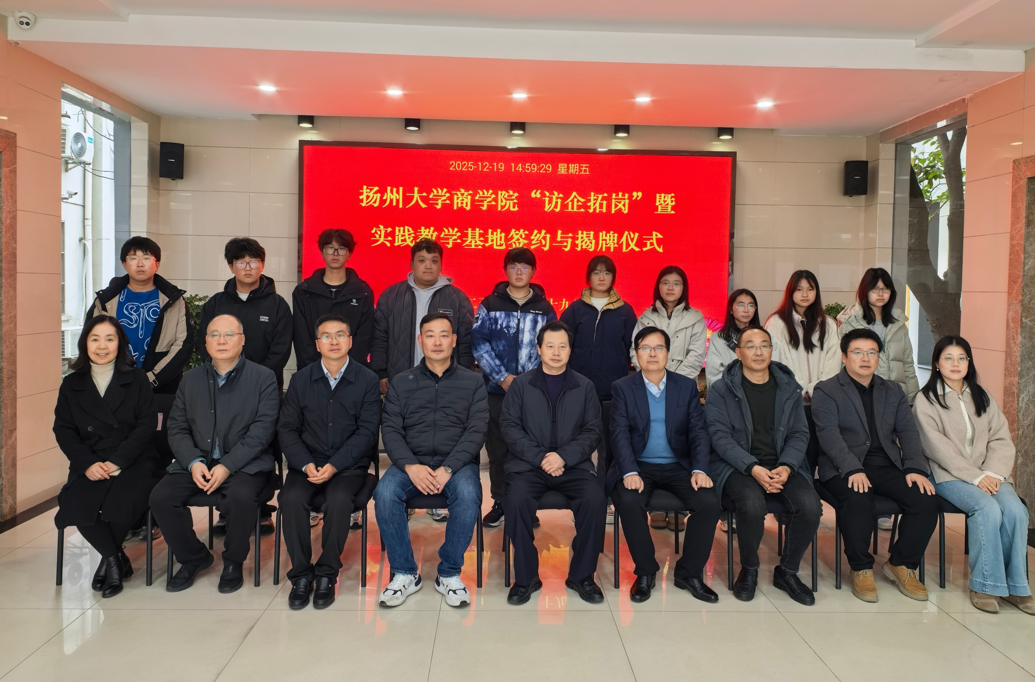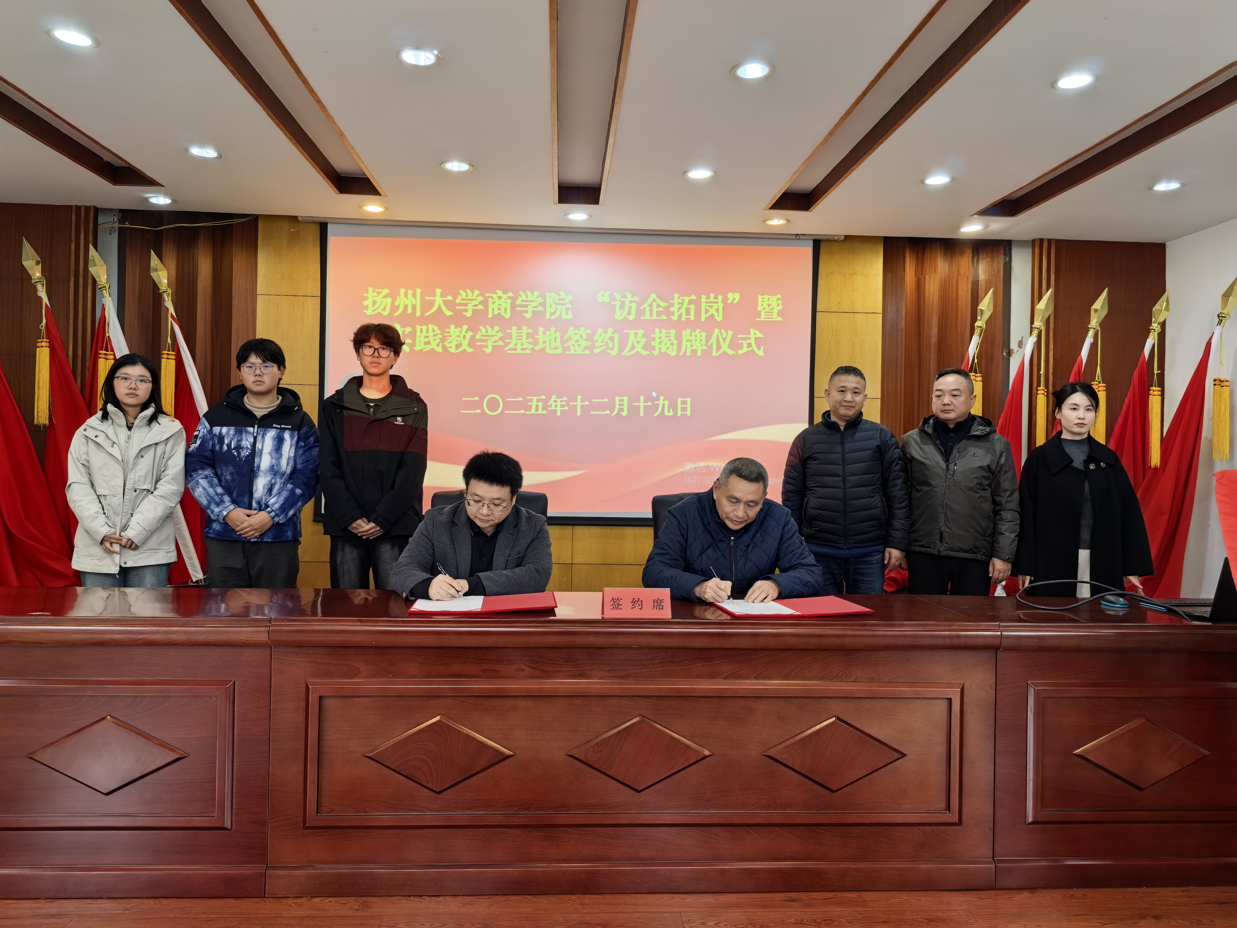 12月19日,扬州大学商学院赴扬州市保安服务总公司开展“访企拓岗”专项活动,并成功与该公司举行实践教学基地签约暨揭牌仪式。院长李志斌,市公安局党委委员、副局长杨林出席活动。院师生代表、市保安总公司党委班子成员和职工代表近20人参加活动。