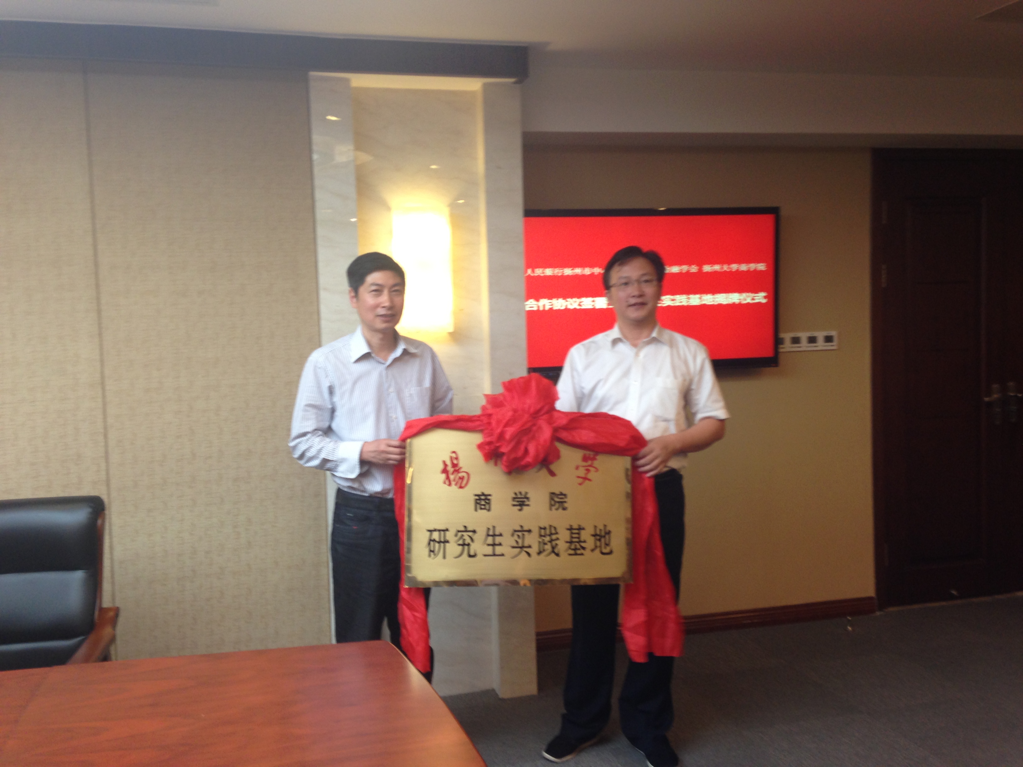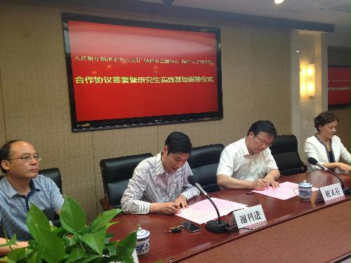 2015年5月21日,我院与人民银行扬州市中心支行签署了双方合作协议并举行了商学院研究生实践基地揭牌仪式。谢科进院长为戴又有行长颁发院特聘客座教授证书,中心支行叶小玲副行长为商学院学子赠送了《现代征信学》等系列书籍。研究生实践基地的建立为我院学术型研究生的多样化培养提供了良好的平台。