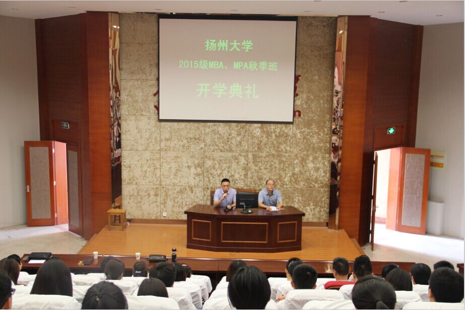 9月12日下午,校2015级MBA/MPA秋季班开学典礼在MBA/MPA中心三楼报告厅隆重举行。131名满怀理想的新同学开启了一段新的人生旅程。校研究生院副院长吉丹如、商学院院长谢科进、副院长李庆钧出席活动。商学院副院长汤学俊主持活动。