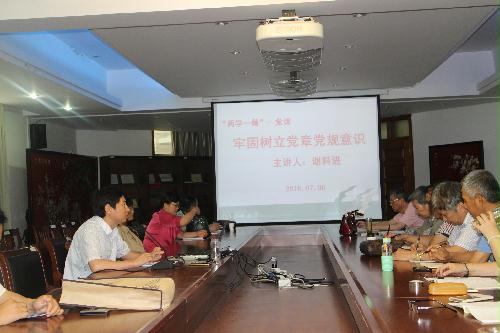 为推进“两学一做”学习教育深入开展,7月6日,院党委书记谢科进为我院全体支部书记及部分教职工党员上了“牢固树立党章党规意识 做‘四讲四有’合格党员”专题党课。会议还专题学习了习近平总书记在庆祝建党95周年大会上的重要讲话。