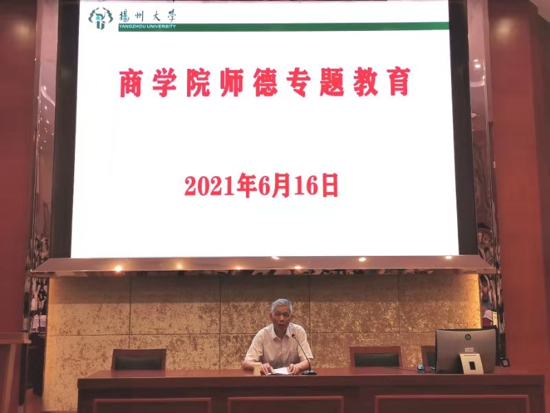 6月16日,学院召开教职工大会,开展师德专题学习教育。院长秦兴方重点领学了《新时代高校教师职业行为十项准则》及《扬州大学师德失范行为负面清单及处理办法(试行)》,要求全院教师要加强师德修养,恪守师德规范,坚持立德树人,做“四有”好教师。