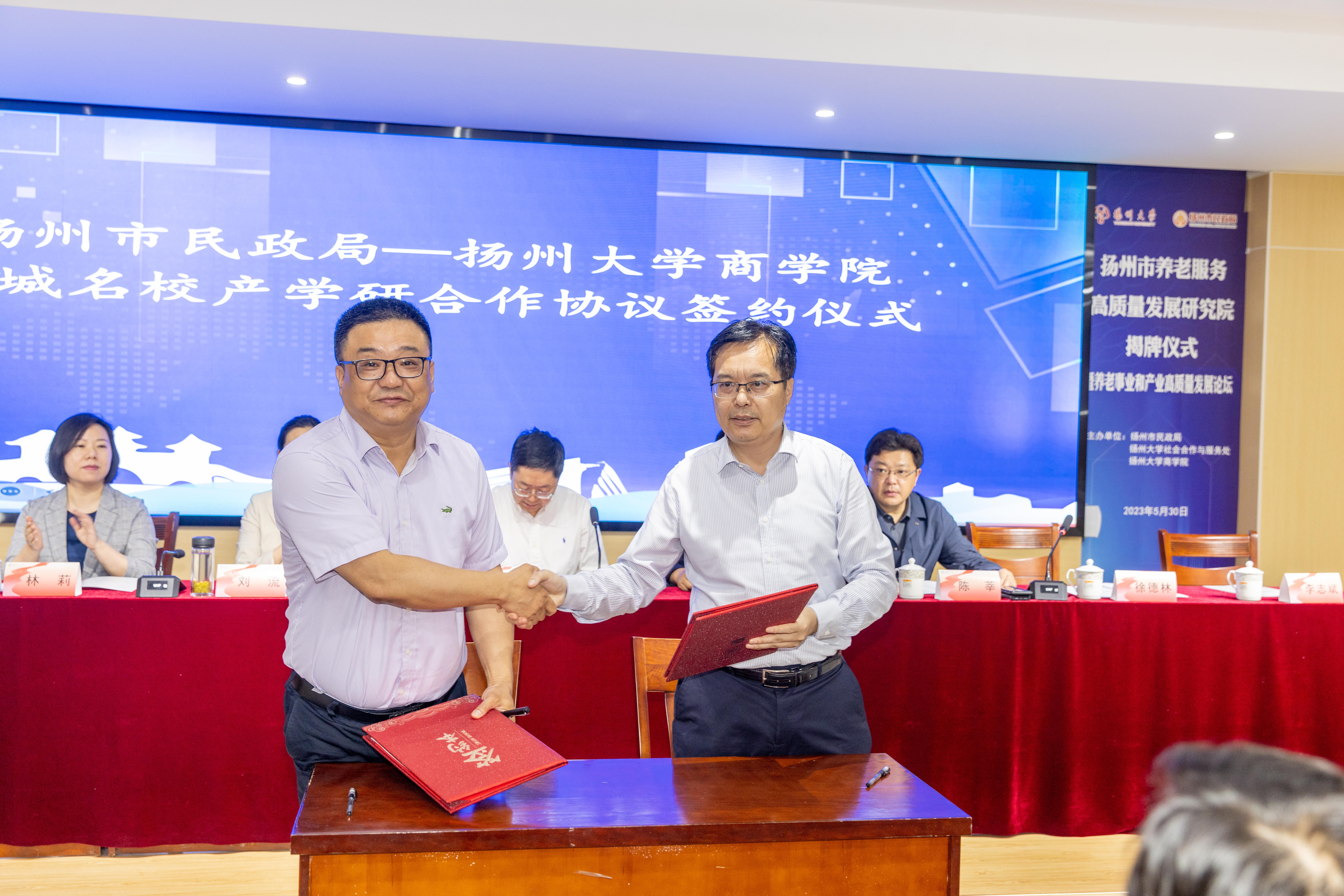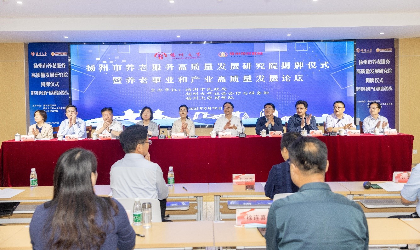 5月30日下午,“扬州市养老服务高质量发展研究院揭牌仪式暨养老事业和产业高质量发展论坛”在我院学术报告厅隆重举办。省民政厅养老服务处处长林莉,扬州市副市长刘流,市民政局二级巡视员陈小浩,校党委常委、副校长蒋乃华共同为研究院揭牌。